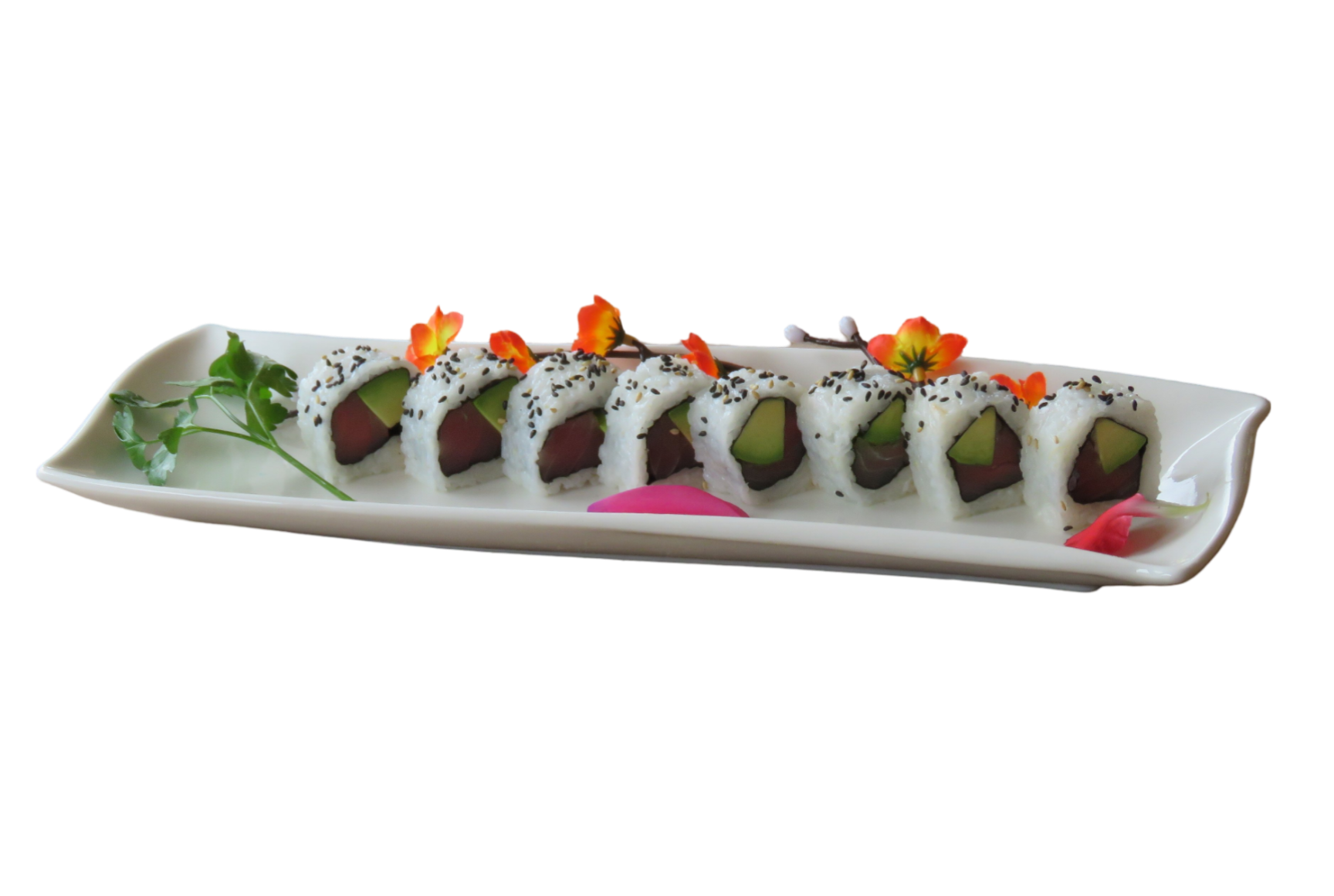 Salmon, aguacate, arroz, alga, sesamo